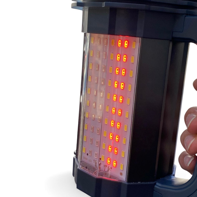 این پرژکتور دارای ۵ حالت نوردهی (قوی، متوسط، ضعیف، چشمکزن، S.O.S) و نور جانبی چندرنگ برای هشدار و روشنایی محیطی است. بدنه مقاوم از آلیاژ آلومینیوم ضدضربه و ضدآب و طراحی ارگونومیک، کیفیت و دوام بالا را تضمین میکند.