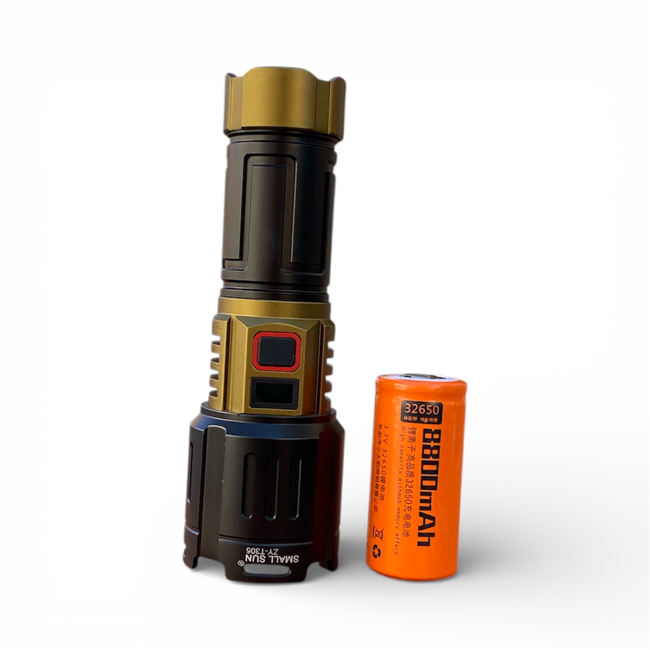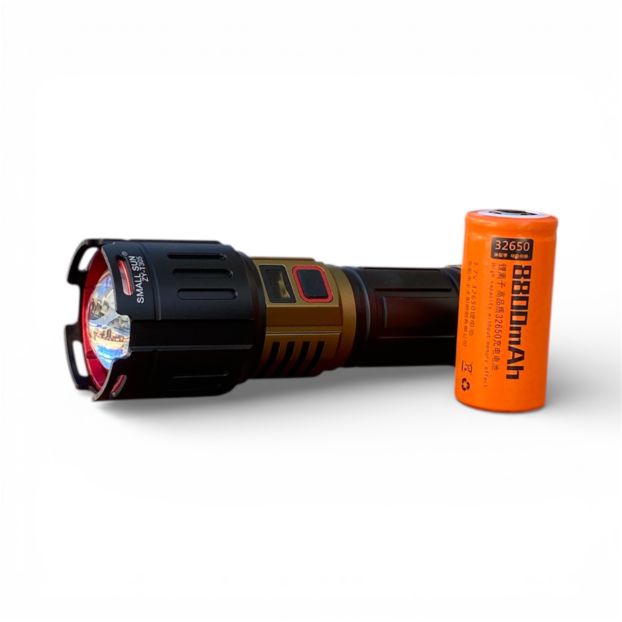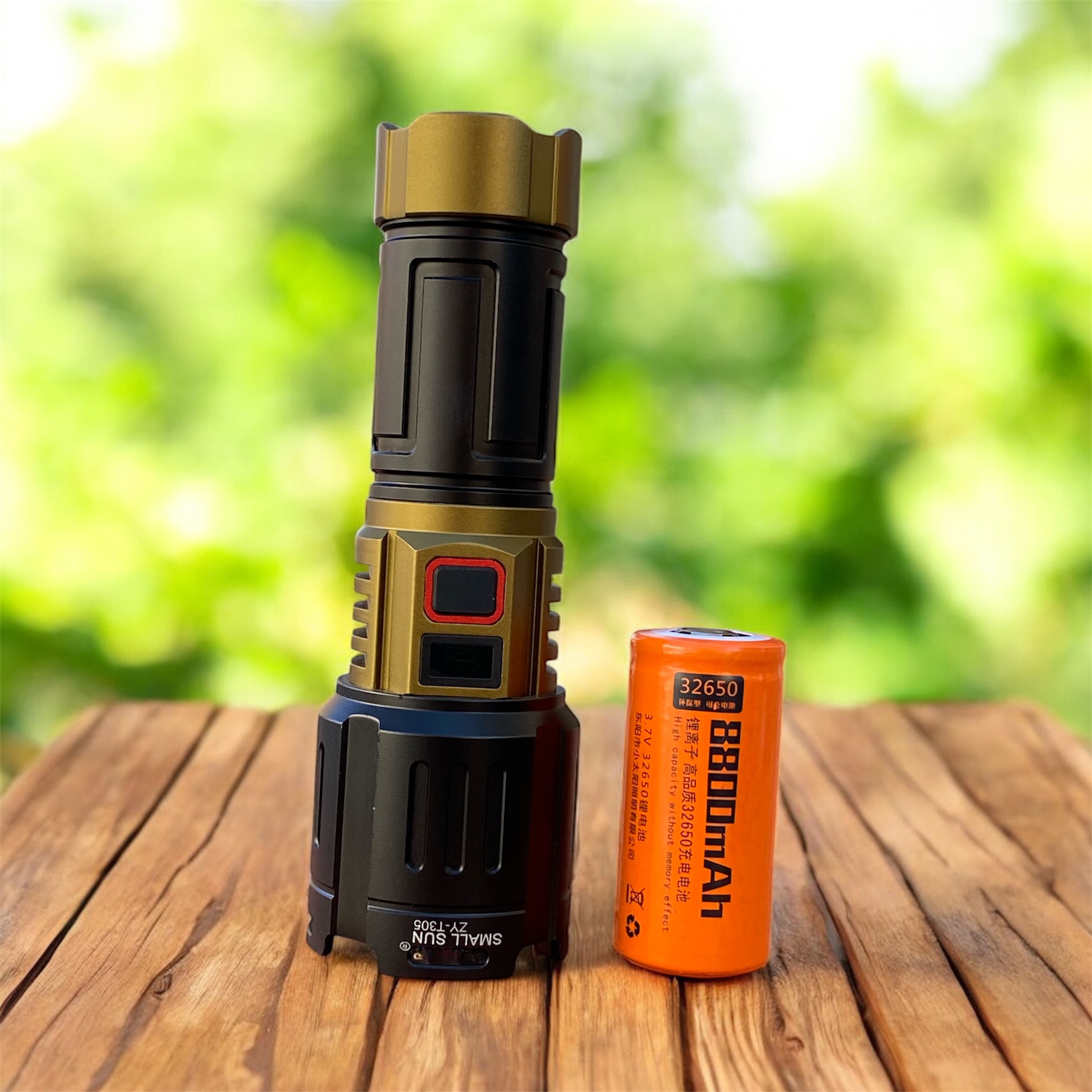 یکی از نقاط قوت این مدل، استفاده از باتری لیتیومی 32650 است. این باتری که با روکش نارنجی در پک اصلی قرار دارد، ظرفیت بسیار بالاتری نسبت به باتریهای معمولی دارد. ظرفیت 8800mAh درج شده روی آن، به شما این اطمینان را میدهد که در کمپینگهای طولانی یا شیفتهای نگهبانی، نگران تمام شدن ناگهانی نور نخواهید بود.
