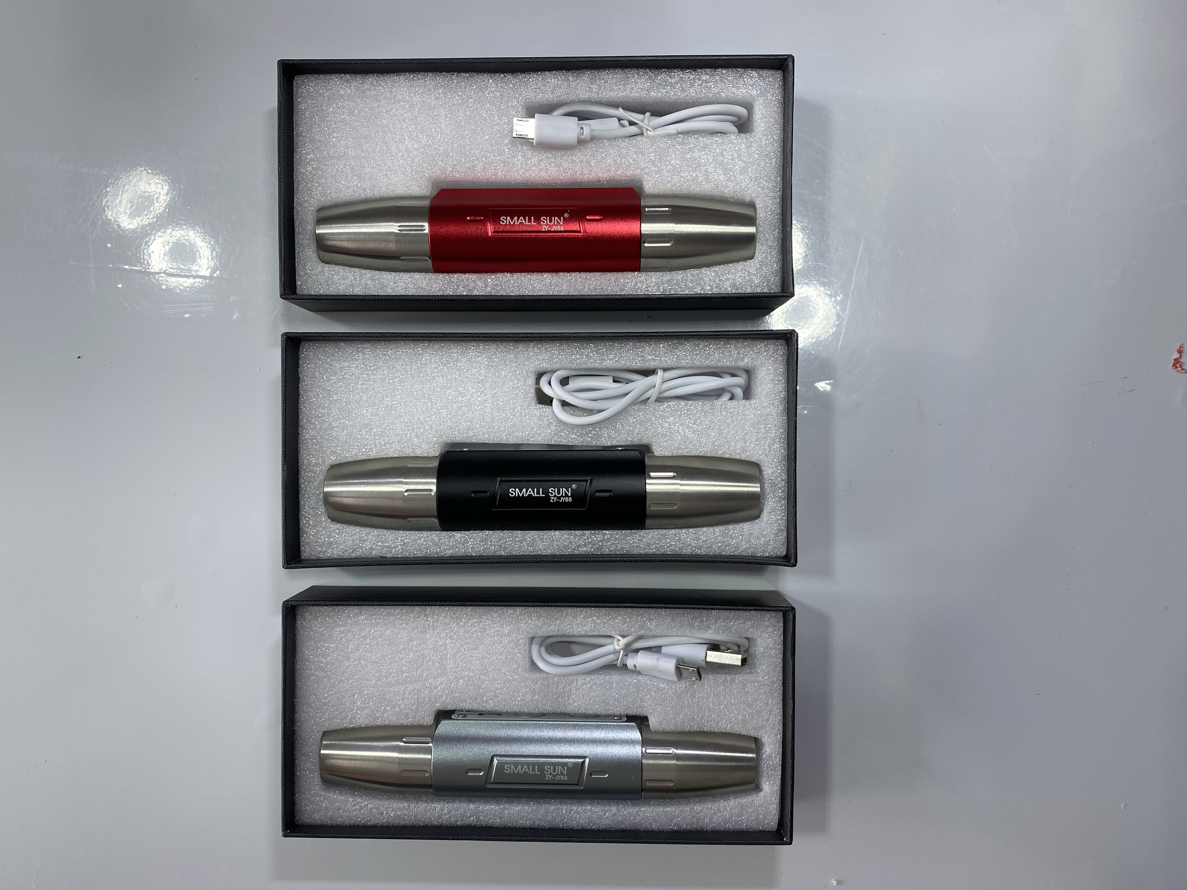 یکی از محصولات برتر شرکت اسمال سان چراغ قوه UV اسمال سان مدل ZY-JY88 می باشد که یک محصول پرکاربرد و بسیار جالب می باشد .چراغ قوه UV اسمال سان مدل ZY-JY88 از الیاژ الومینیوم ساخته شده و بسیار مقاوم و ضد ضربه می باشد و جنسی محکم و قوی دارد و خیلی سبک وزن است و حملی راحت و اسان دارد .