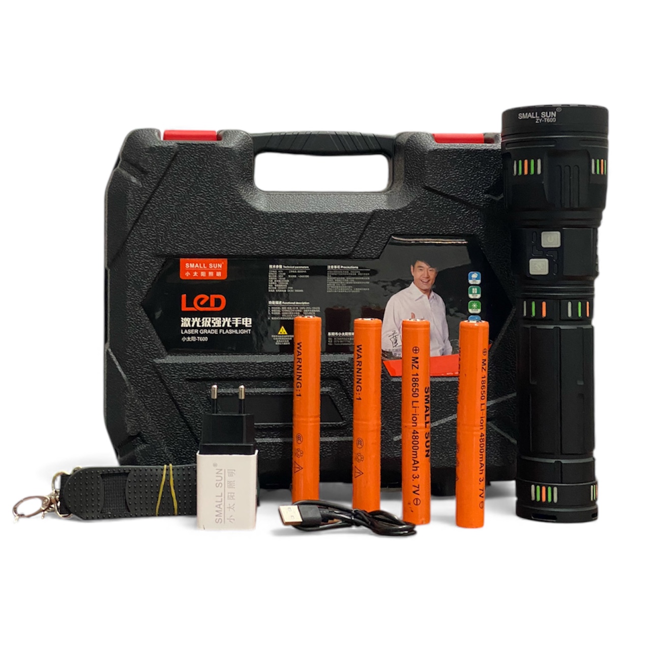 چراغ قوه پلیسی اسمال سان مدل ZY-T600 (اصلی) | برد ۱۰۰۰ متر و ۵۰۰۰ لومن | دارای قابلیت پاوربانک