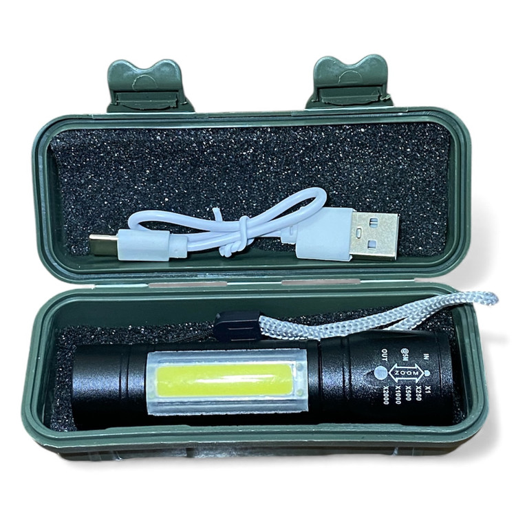 چراغ قوه ، هارد کیس پلاستیکی ، کابل شارژ تایپ c ، بند مچی
