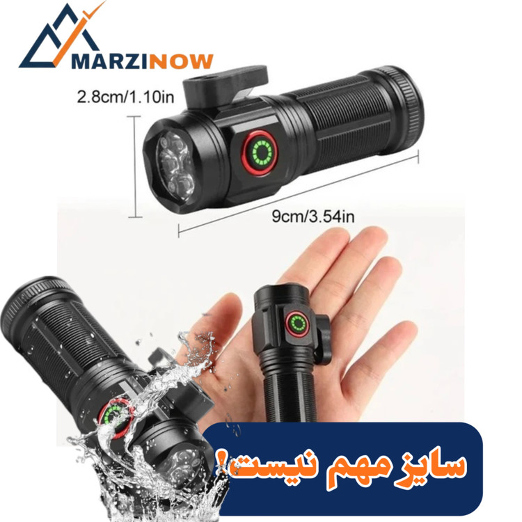 چراغ قوه حرفهای دستی جیبی ۴ لامپ اسمال سان (اصلی) مدل W5183 _بسیار فدرتمند همراه ۲ عدد باتری شارژی لیتیوم یون و کیف و کابل شارژ