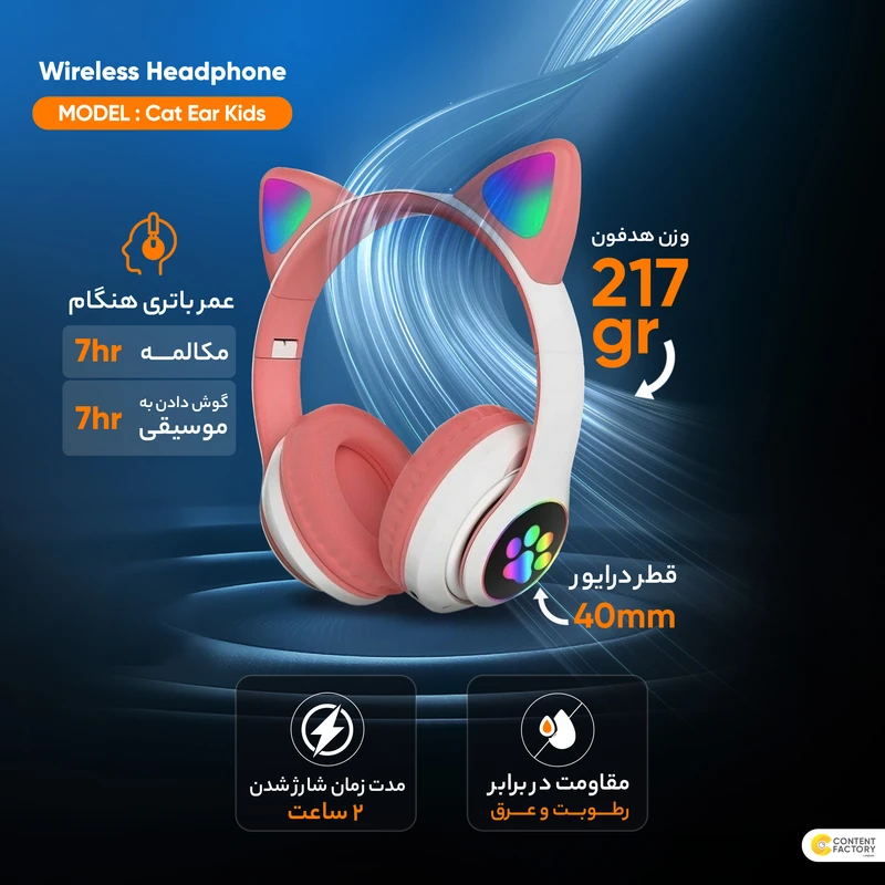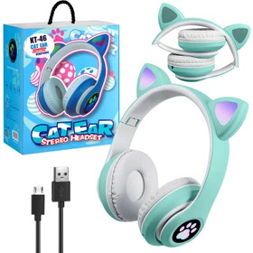 هدفون بلوتوثی بی سیم طرح گربه مدل CAT EAR KT-46 بسیار کیوت و با کیفیت اتصال با بلوتوث و کابل AUX
