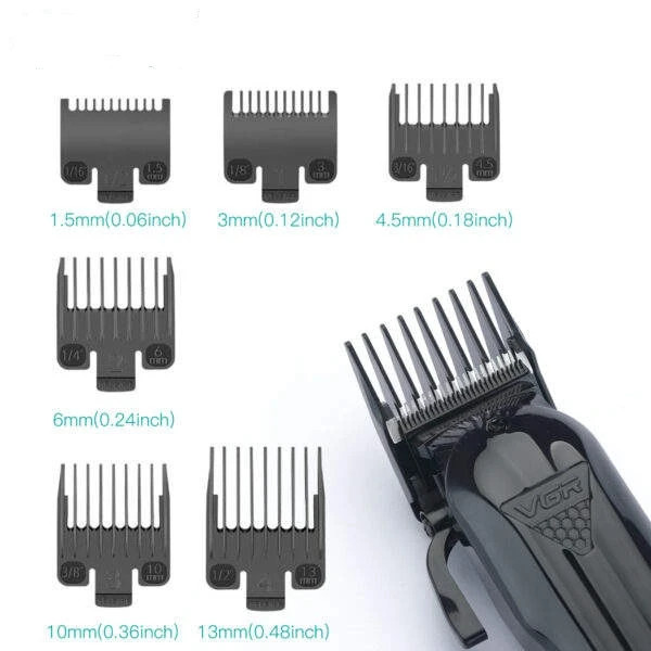 روغن ، برس تمییز کننده، شانه سر، 4 عدد شانه برای اصلاح در سایز های: (1.5_ 3_ 4.5_6_10_13) میلی متری